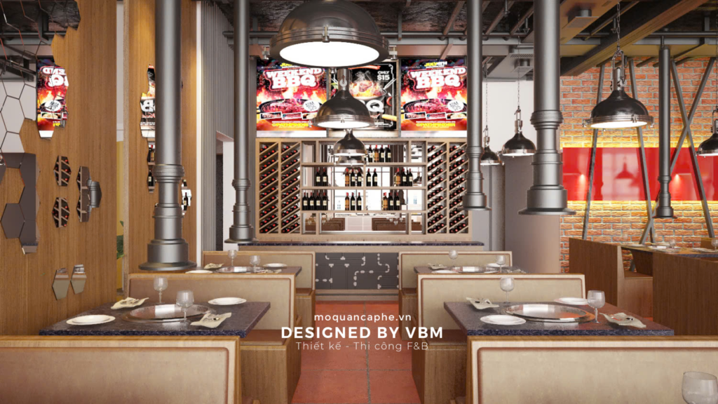 VBM tự hào là đơn vị thiết kế và thi công hàng đầu trong lĩnh vực F&B, luôn cam kết mang đến các giải pháp tối ưu nhất cho từng dự án. Với BBQ House, VBM đã thành công trong việc kết hợp hài hòa giữa thiết kế thẩm mỹ và hiệu quả vận hành, giúp không gian trở nên hoàn hảo cả về mặt hình thức lẫn công năng.