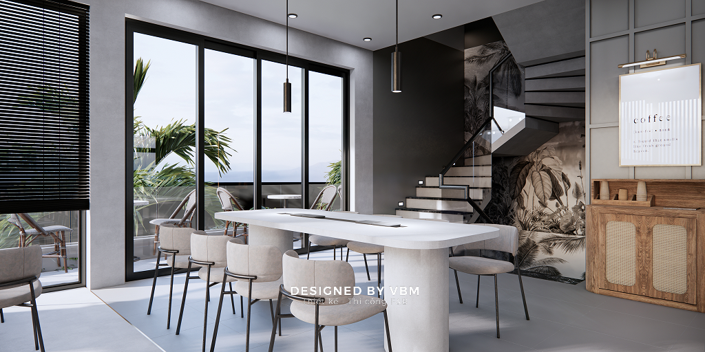 Brand coffee – nơi không gian thiết kế hiện đại kết hợp hoàn hảo giữa sự mộc mạc và sang trọng, tạo nên một điểm lý tưởng cho những ai yêu thích cà phê và không gian thư giãn.