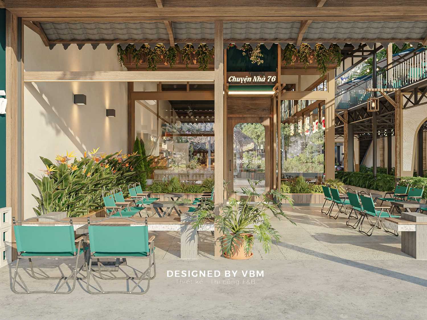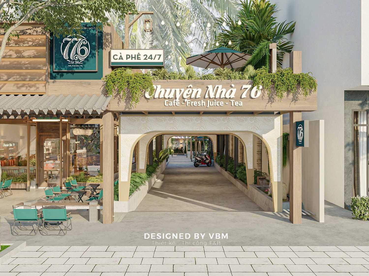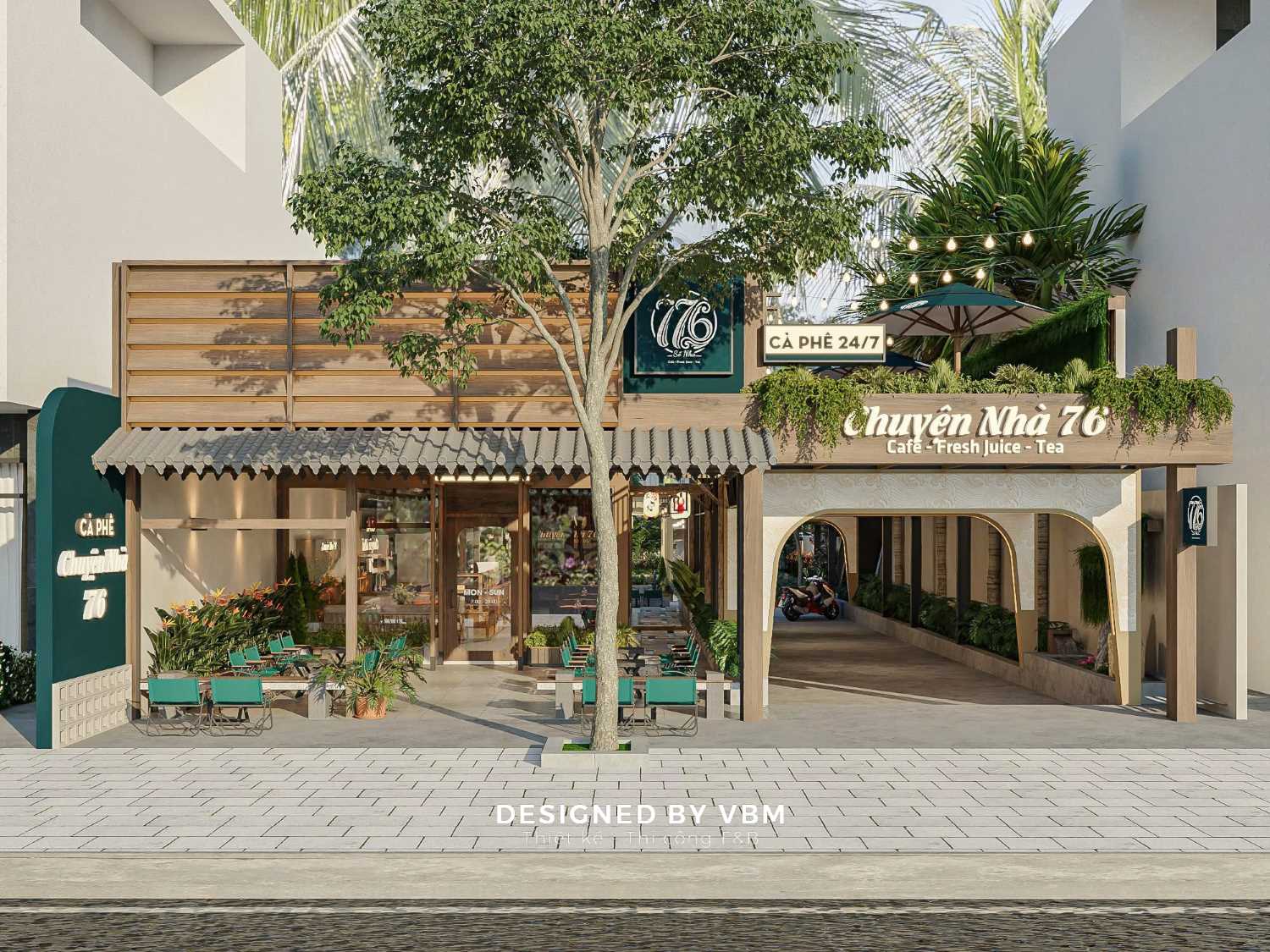Chuyện Nhà 76 là một trong những dự án nổi bật do VBM Việt Nam thiết kế và thi công, mang đến không gian cà phê kết hợp với nghệ thuật và thiên nhiên một cách hài hòa. Ngay từ cái nhìn đầu tiên, quán cà phê đã gây ấn tượng với phong cách kiến trúc mộc mạc nhưng không kém phần tinh tế.