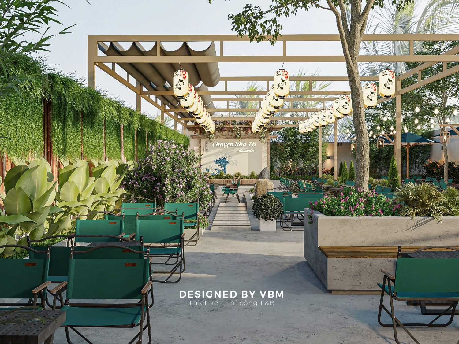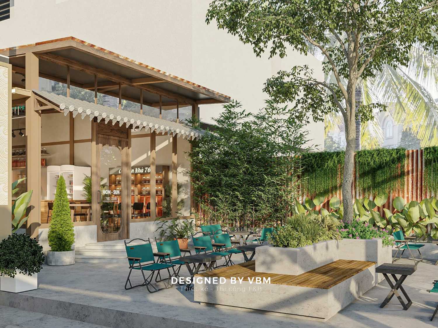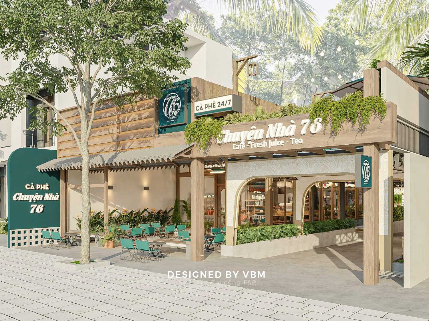 Chuyện Nhà 76 là một trong những dự án nổi bật do VBM Việt Nam thiết kế và thi công, mang đến không gian cà phê kết hợp với nghệ thuật và thiên nhiên một cách hài hòa. Ngay từ cái nhìn đầu tiên, quán cà phê đã gây ấn tượng với phong cách kiến trúc mộc mạc nhưng không kém phần tinh tế.