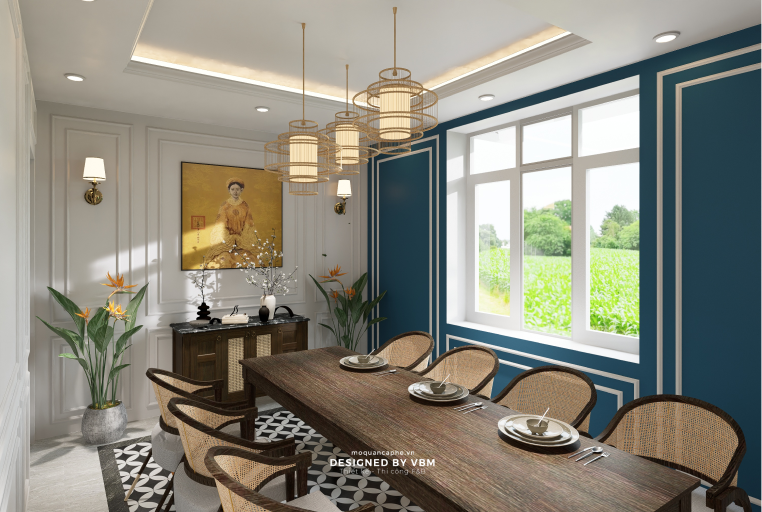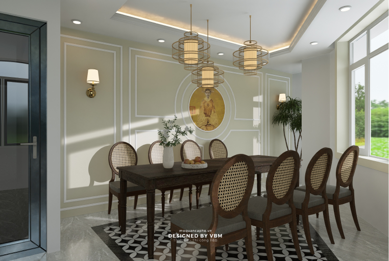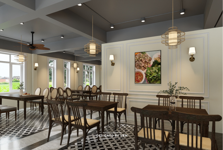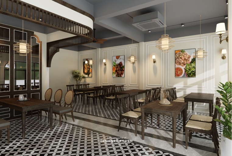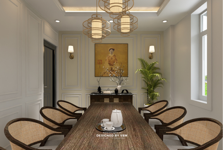 - Trang trí đậm chất văn hóa: Các bức tranh nghệ thuật, đèn treo phong cách truyền thống cùng tông màu hài hòa gợi nhớ đến vẻ đẹp của văn hóa Việt Nam.