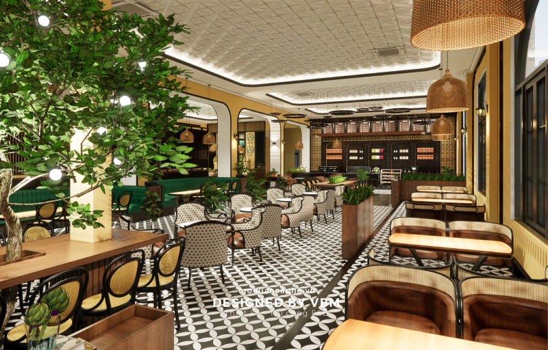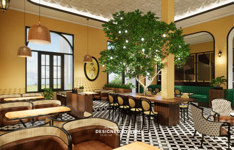 - Không gian rộng mở và trang nhã: Với các khu vực ngồi được bố trí hợp lý, kết hợp đèn trang trí tinh tế và cây xanh, không gian mang lại cảm giác thư giãn và gần gũi thiên nhiên.
