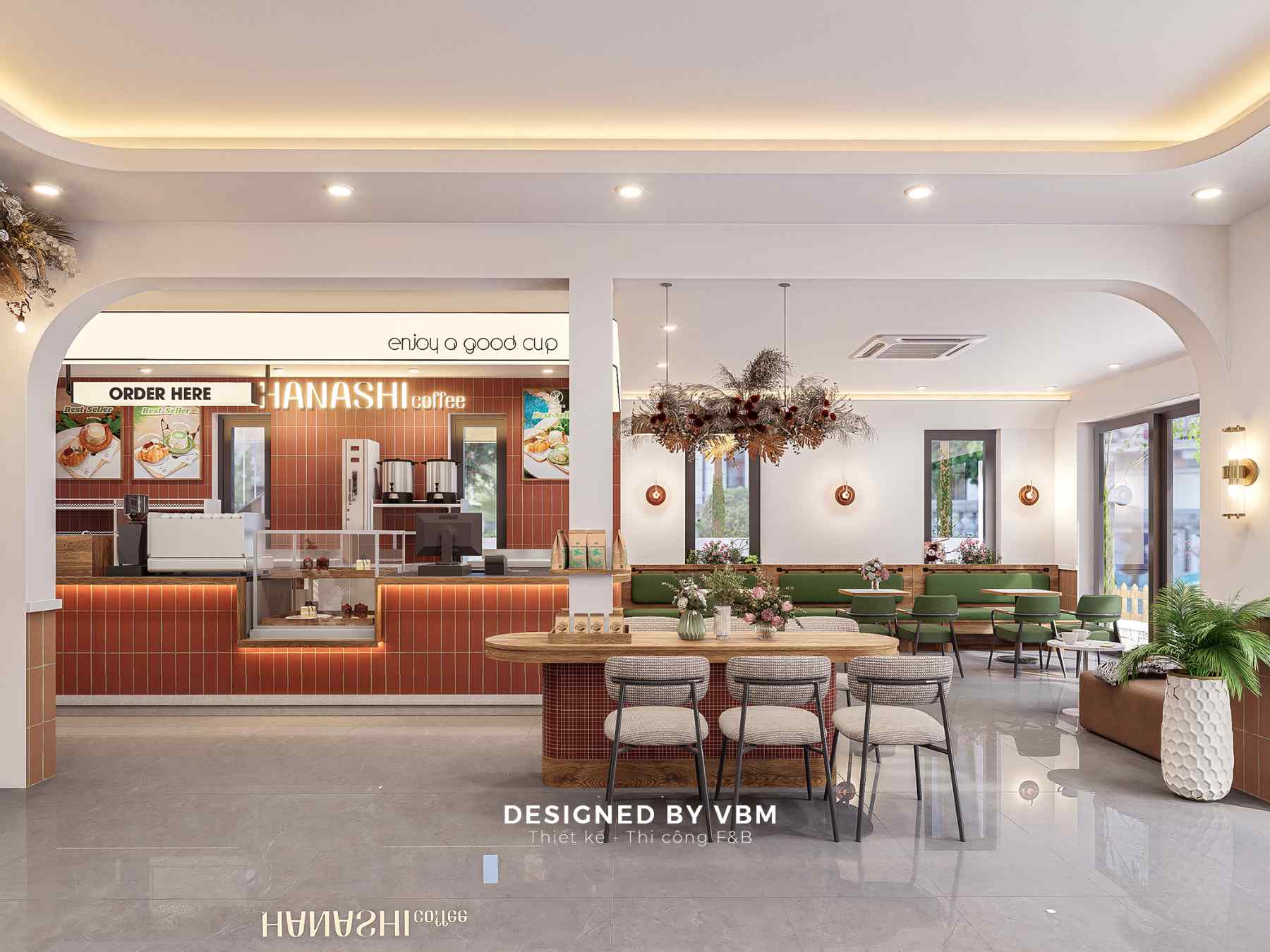 ới sứ mệnh mang đến cho khách hàng những trải nghiệm thưởng thức cà phê tuyệt vời trong không gian sang trọng và ấm cúng, HANASHI COFFEE đã chọn VBM làm đối tác tin cậy trong việc thiết kế và thi công không gian quán. Dự án này không chỉ là một công trình thiết kế, mà là sự kết hợp hoàn hảo giữa sự sáng tạo, tính thẩm mỹ và tối ưu hóa công năng.