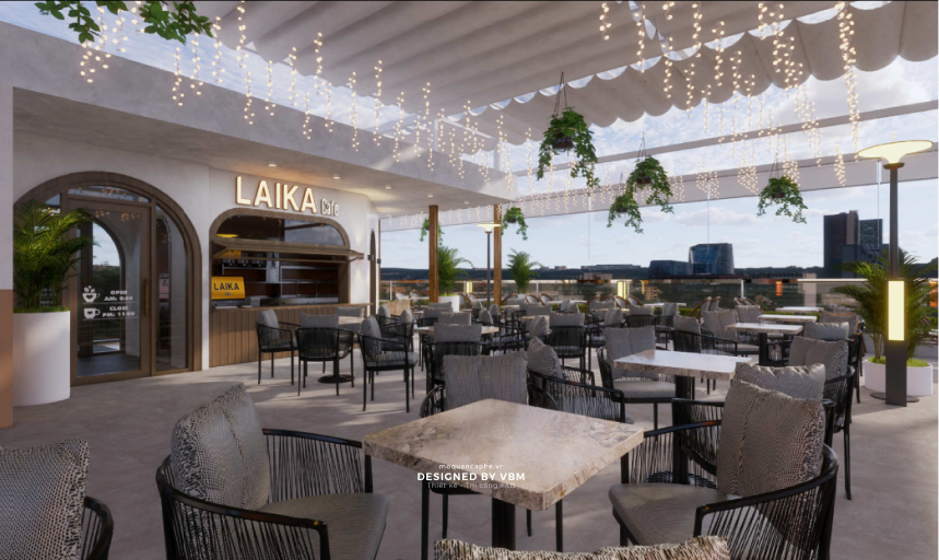 Laika Hàm Cá Mập được thiết kế với phong cách hiện đại, vừa ấm cúng lại vừa phóng khoáng, phù hợp cho nhiều đối tượng khách hàng từ các bạn trẻ năng động đến các gia đình và dân công sở. Với ánh đèn dịu nhẹ cùng nội thất sang trọng, Laika Hàm Cá Mập tạo cảm giác thư giãn, giúp khách hàng thả mình vào không gian yên bình và tận hưởng không khí nhộn nhịp của phố phường từ trên cao.