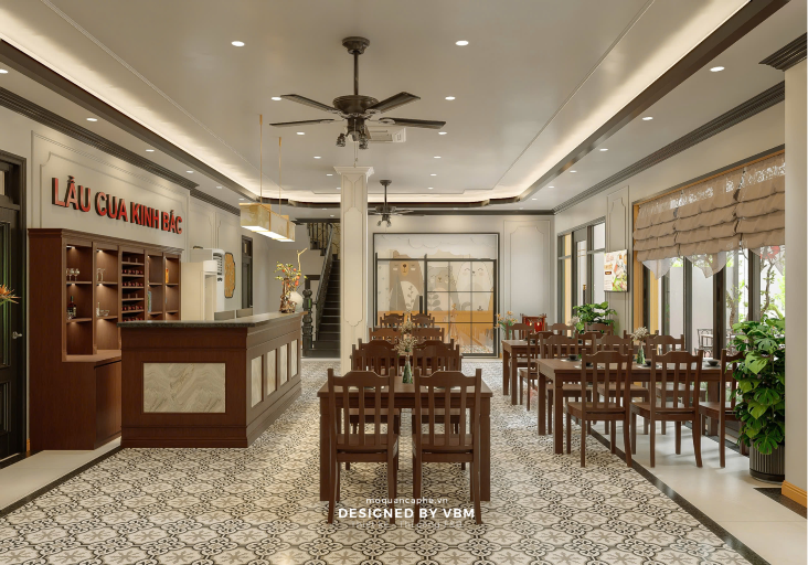 Nhà hàng Lẩu Cua Kinh Bắc được VBM Việt Nam thiết kế với mục tiêu mang đến không gian đậm chất văn hóa ẩm thực Bắc Bộ, kết hợp giữa nét truyền thống và sự sang trọng hiện đại. Dự án này không chỉ tập trung vào kiến trúc nổi bật mà còn hướng đến trải nghiệm trọn vẹn cho thực khách.