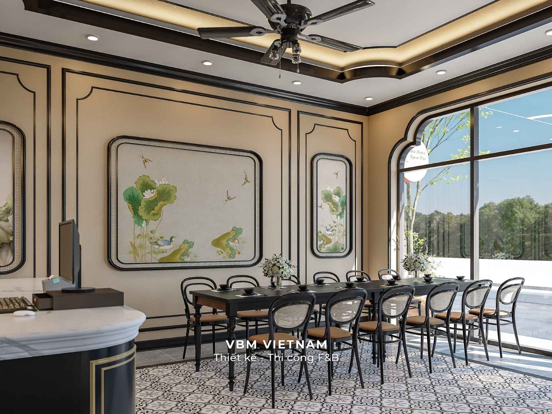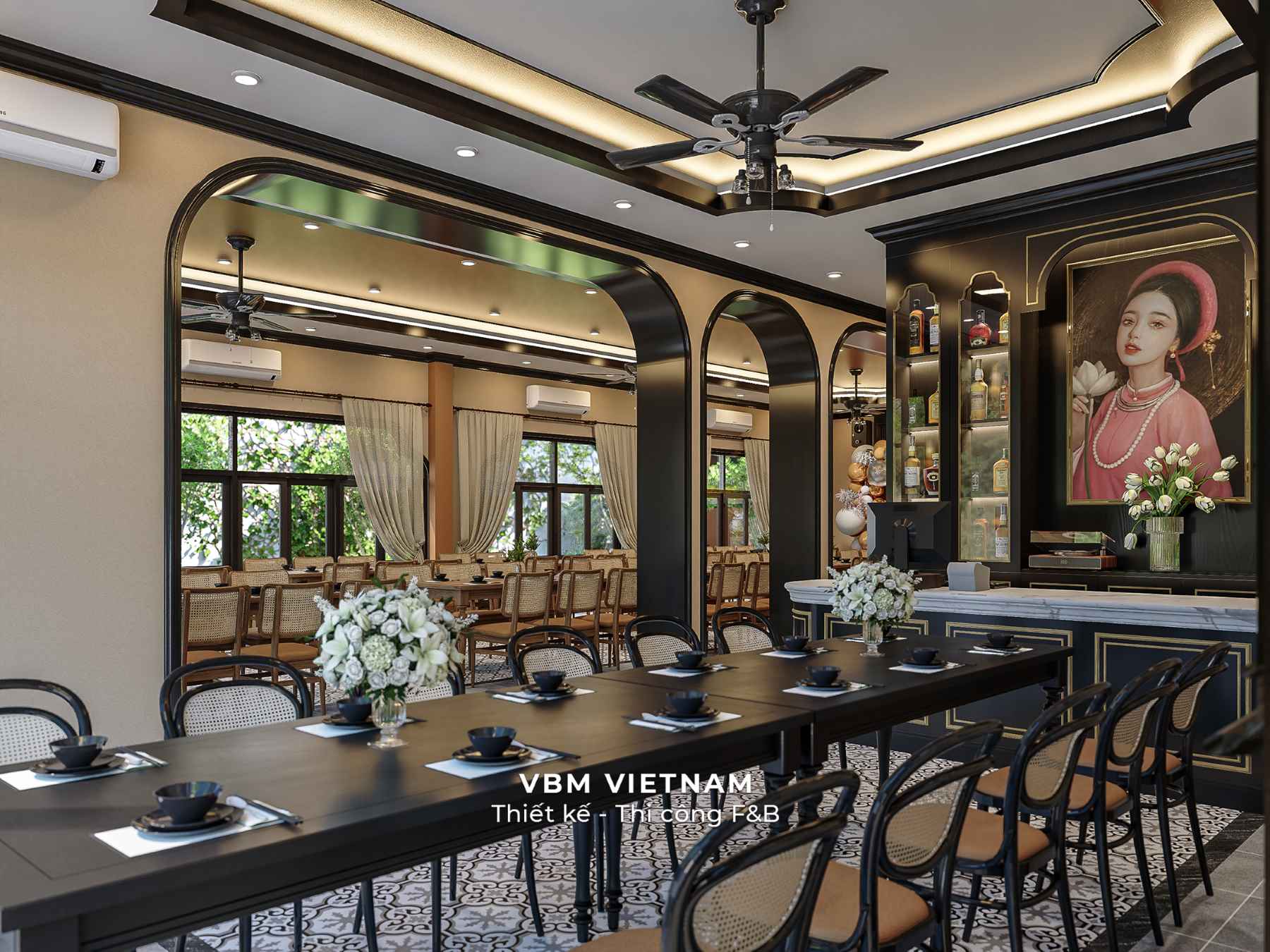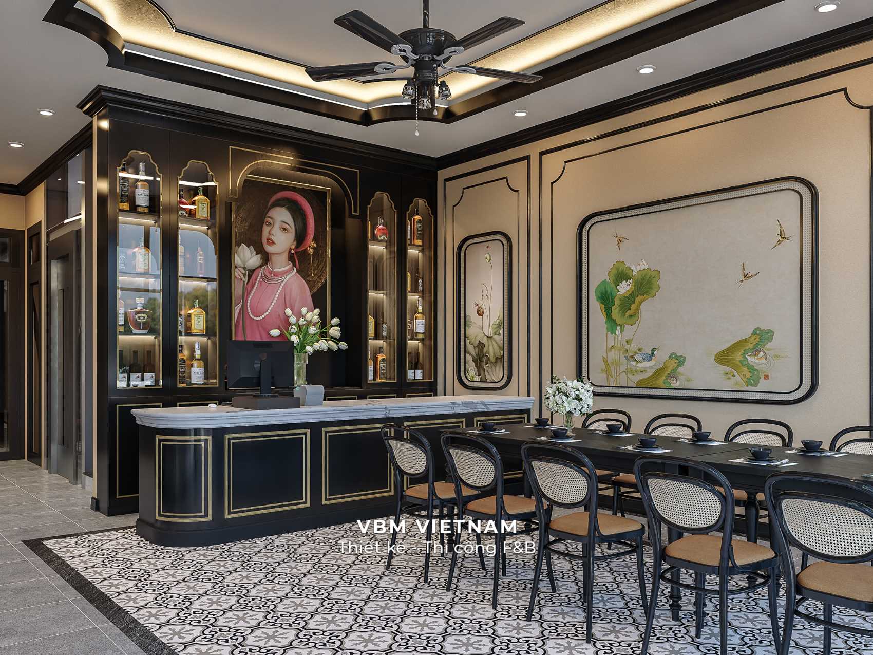 Không gian được lấy cảm hứng từ vẻ đẹp truyền thống Việt Nam kết hợp cùng phong cách đương đại tinh tế, tạo nên trải nghiệm ẩm thực ấm cúng nhưng vẫn sang trọng.