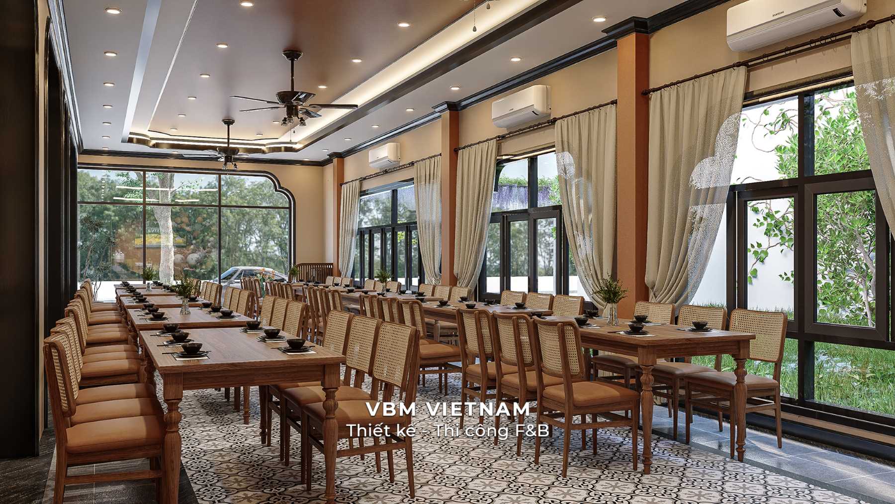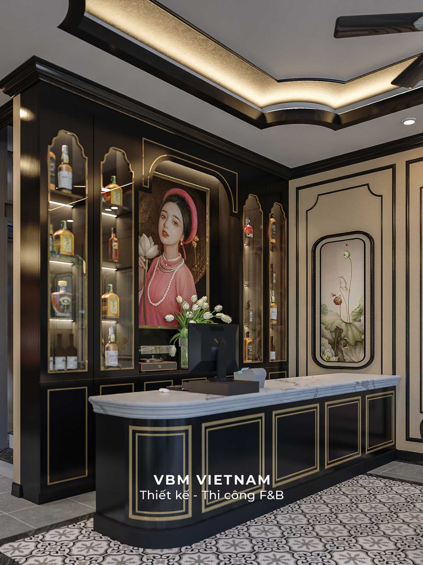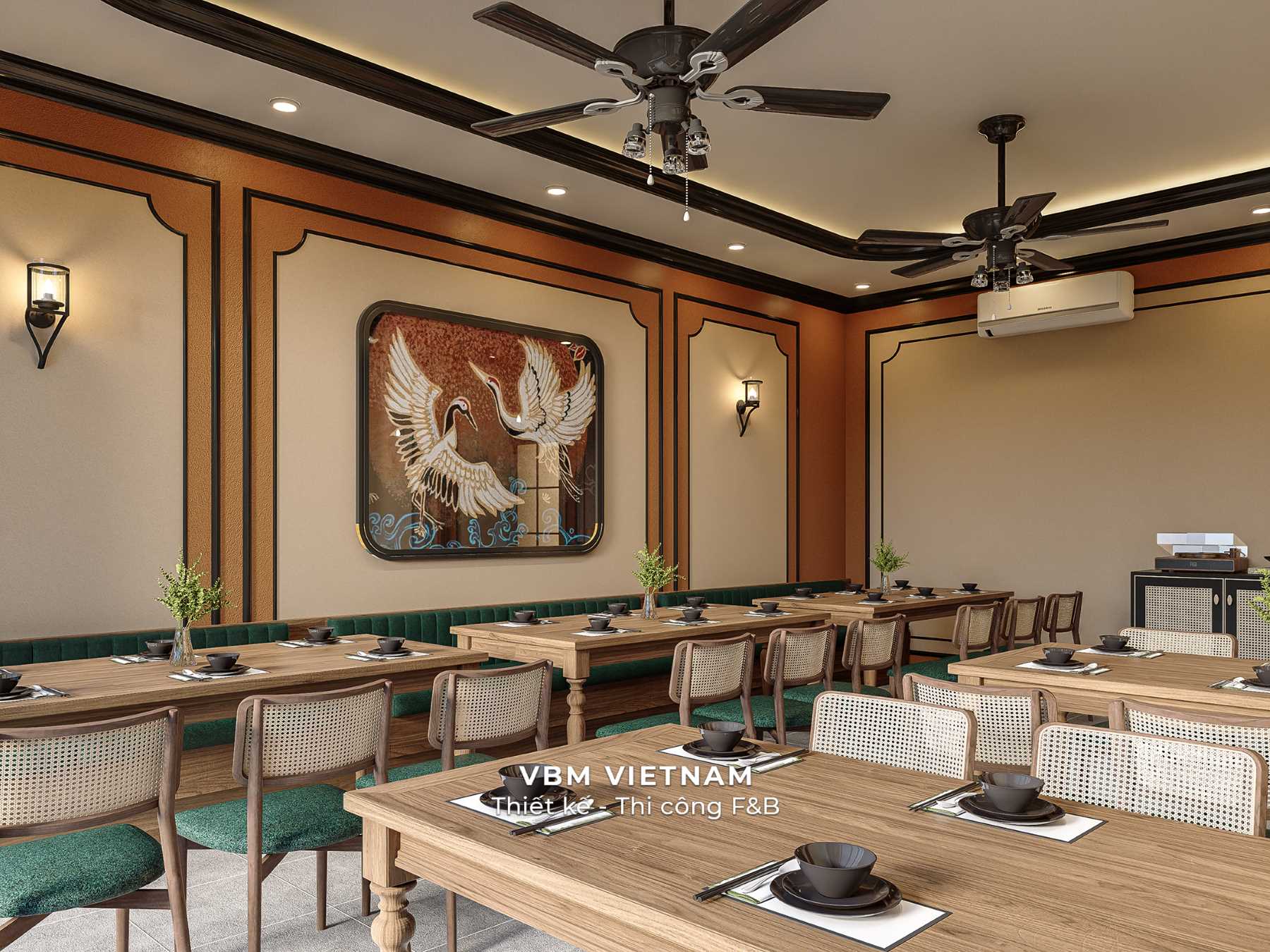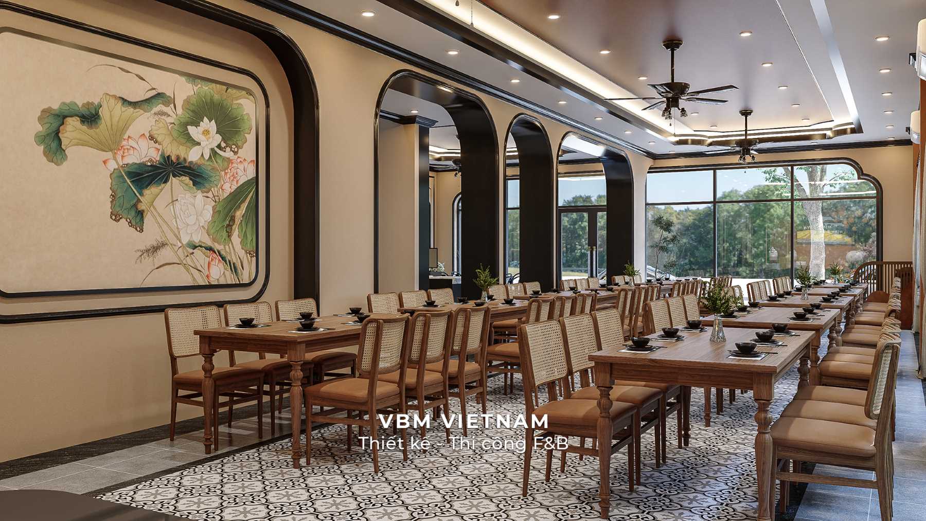 Không gian được lấy cảm hứng từ vẻ đẹp truyền thống Việt Nam kết hợp cùng phong cách đương đại tinh tế, tạo nên trải nghiệm ẩm thực ấm cúng nhưng vẫn sang trọng.
