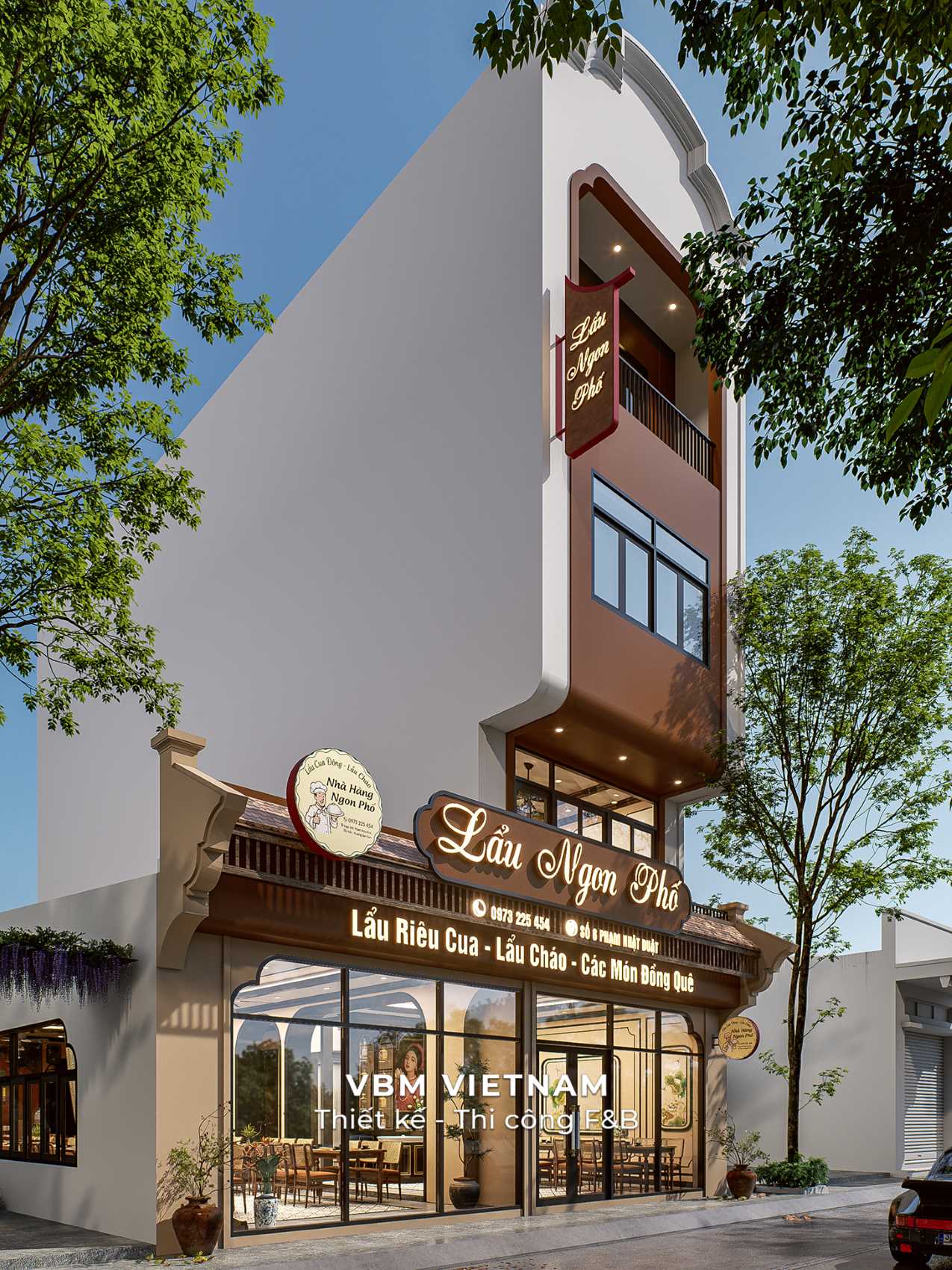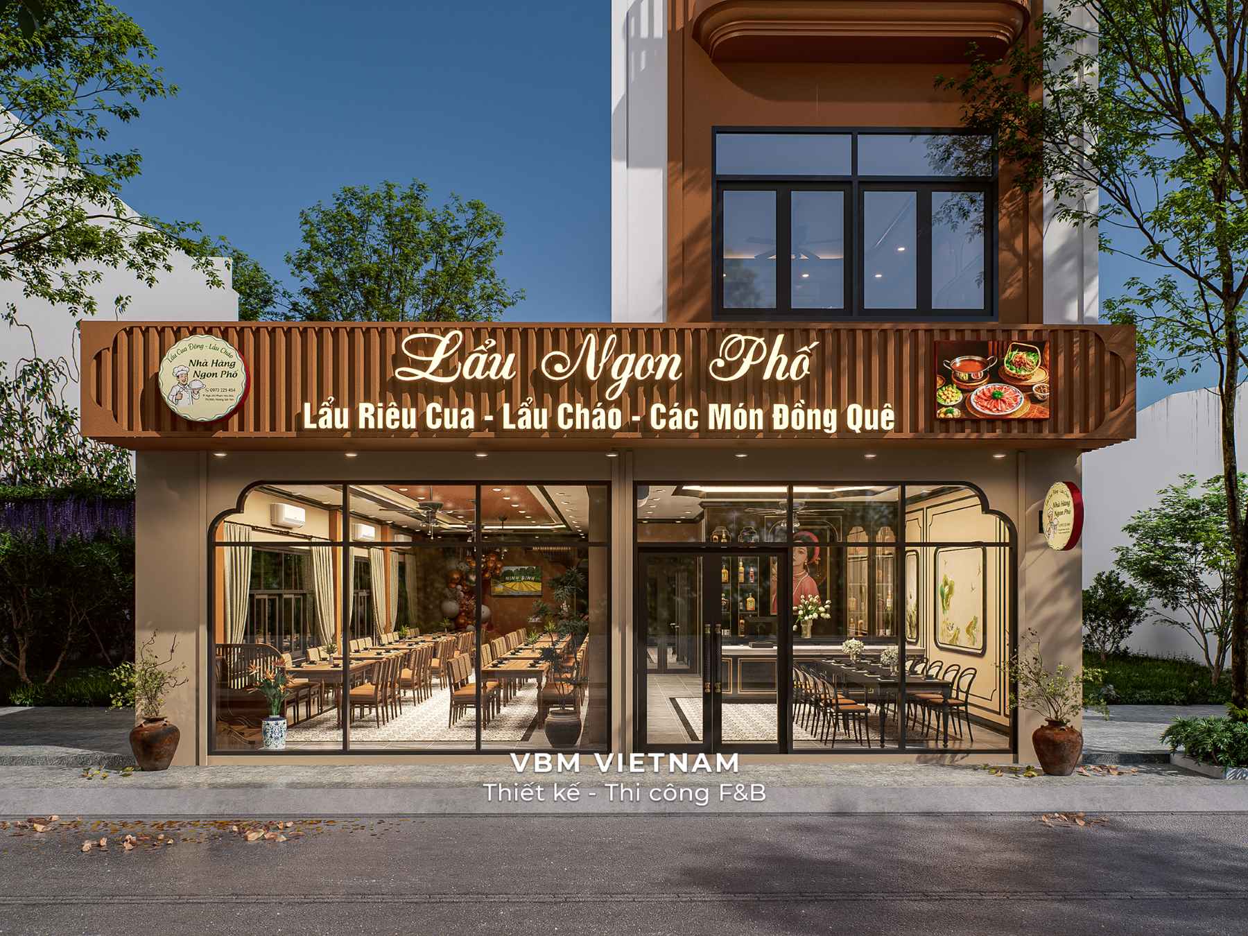 Từng chi tiết nội thất – từ hoa văn tường, chất liệu gỗ, đến ánh sáng và màu sắc chủ đạo – đều được tính toán kỹ lưỡng để gợi cảm giác gần gũi, thân thiện như chính tinh thần “đồng quê Việt” mà Lẩu Ngon Phố hướng tới.