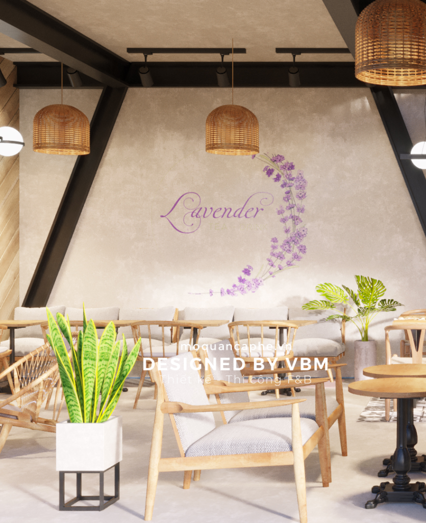 Thiết kế của “Lavender Tea & Drink” mang đậm phong cách nhẹ nhàng và tinh tế, tạo nên không gian thư giãn lý tưởng cho những ai yêu thích sự tĩnh lặng và thanh lịch. Với tông màu chủ đạo là tím lavender kết hợp với trắng kem, không gian quán toát lên vẻ đẹp dịu dàng và thanh thoát, giống như một khu vườn hoa lavender thu nhỏ giữa lòng thành phố.
