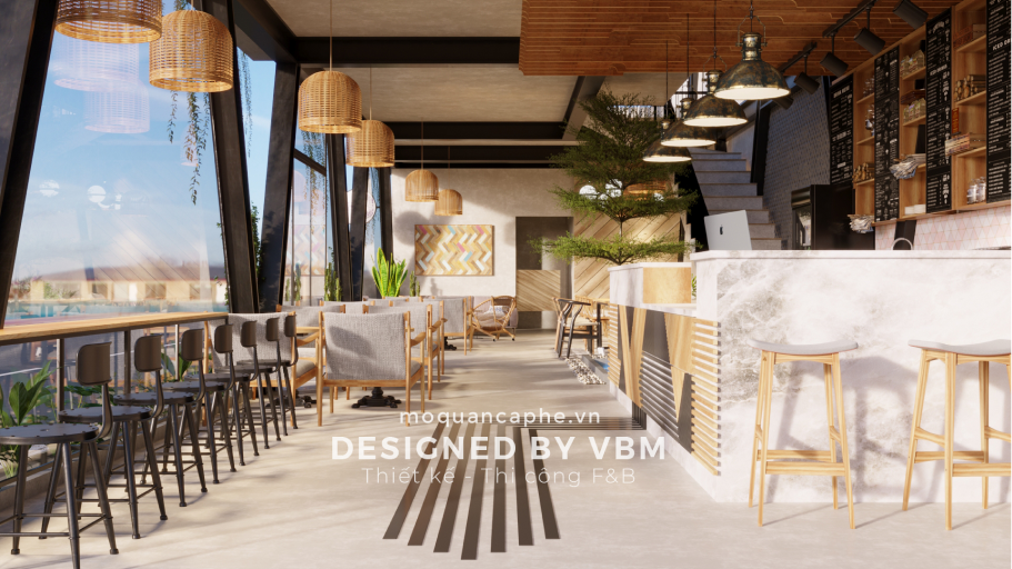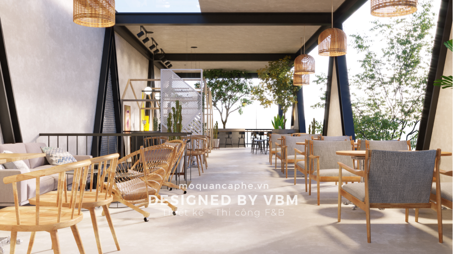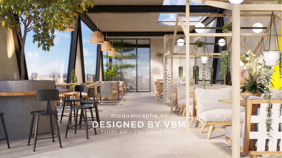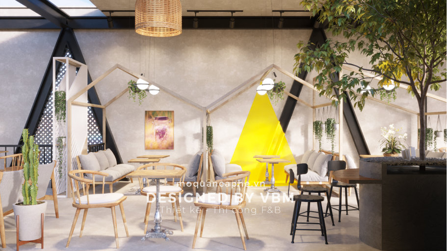 Nội thất của quán được lựa chọn kỹ lưỡng với các bộ bàn ghế gỗ màu sáng, kết hợp với những chiếc gối ôm màu tím nhẹ, tạo điểm nhấn ấn tượng và mang lại cảm giác êm ái, dễ chịu. Ánh sáng trong quán được điều chỉnh mềm mại nhờ hệ thống đèn thả trần với thiết kế hiện đại nhưng không kém phần lãng mạn, mang đến bầu không khí ấm cúng và thoải mái cho khách hàng.