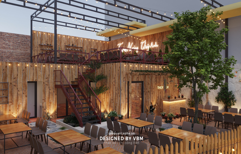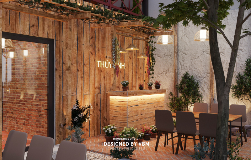 • Sử dụng vật liệu gỗ tự nhiên kết hợp với tường gạch thô, tạo cảm giác gần gũi với thiên nhiên.
