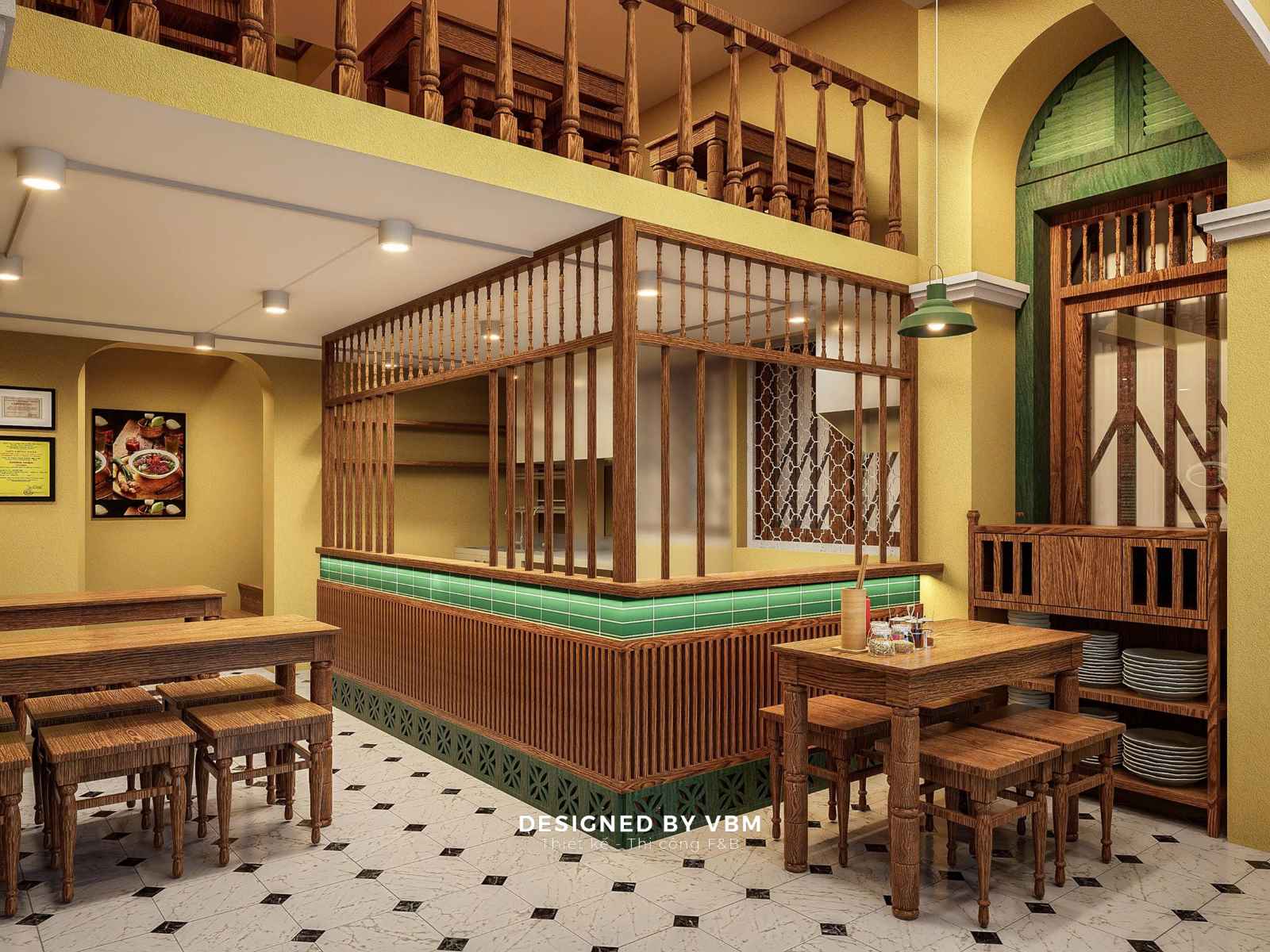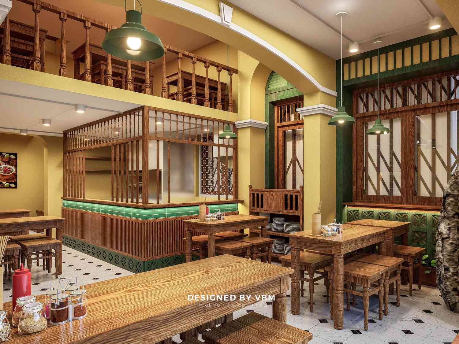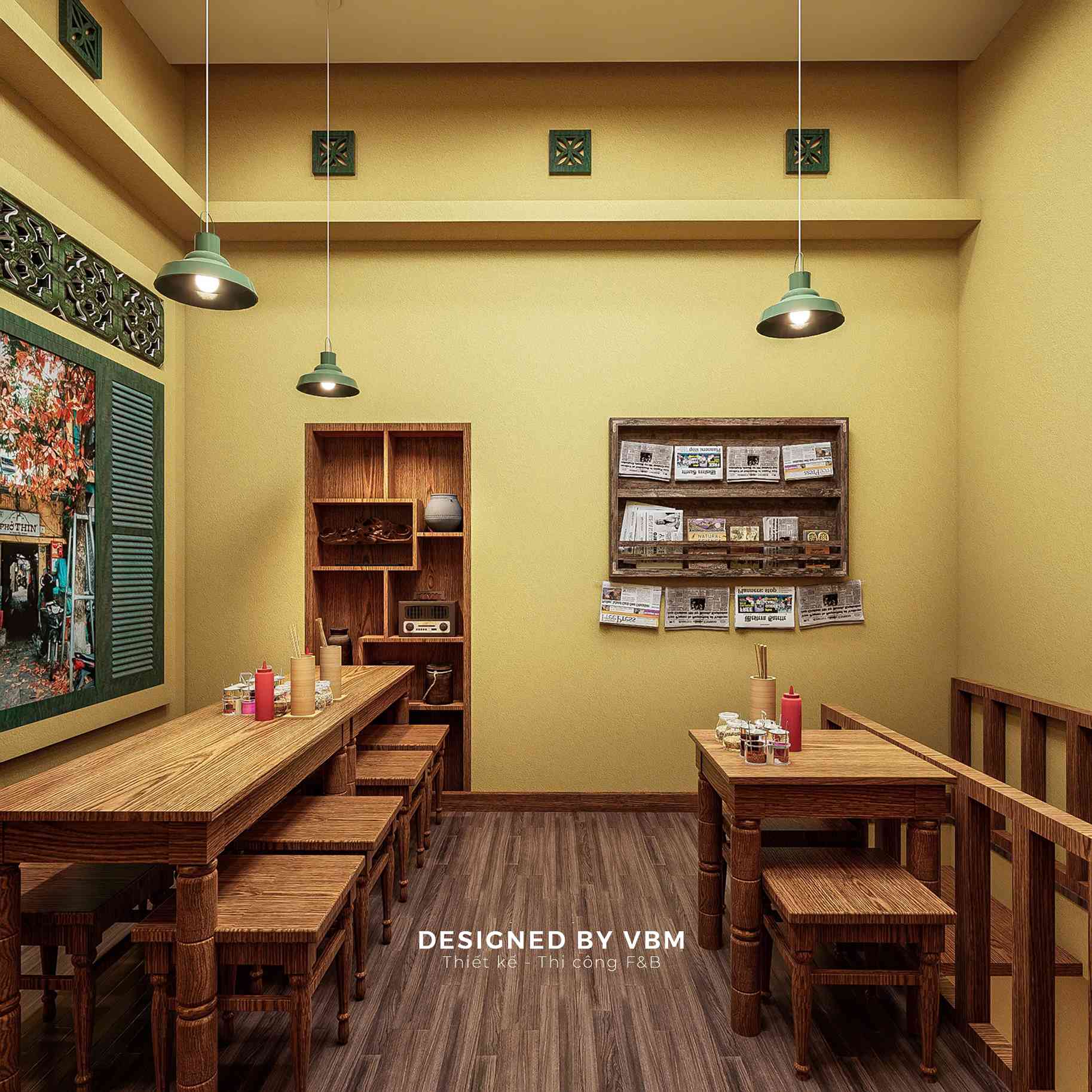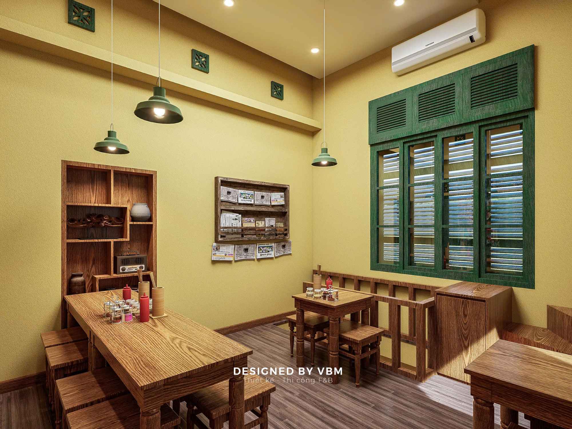 - Mỗi góc nhỏ đều được tính toán để tạo cảm giác gần gũi, thân thuộc, gợi lại hình ảnh những quán phở vỉa hè quen thuộc.