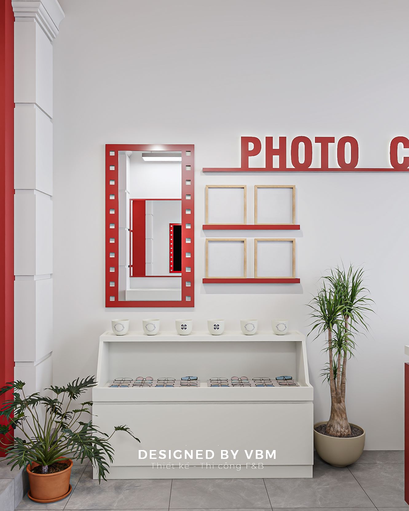 – Khu vực photobooth thiết kế tinh tế, giúp khách hàng dễ dàng chụp hình sống động, tăng trải nghiệm thương hiệu.