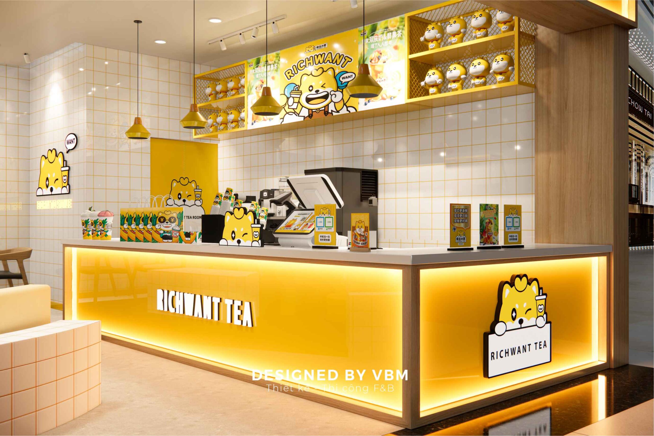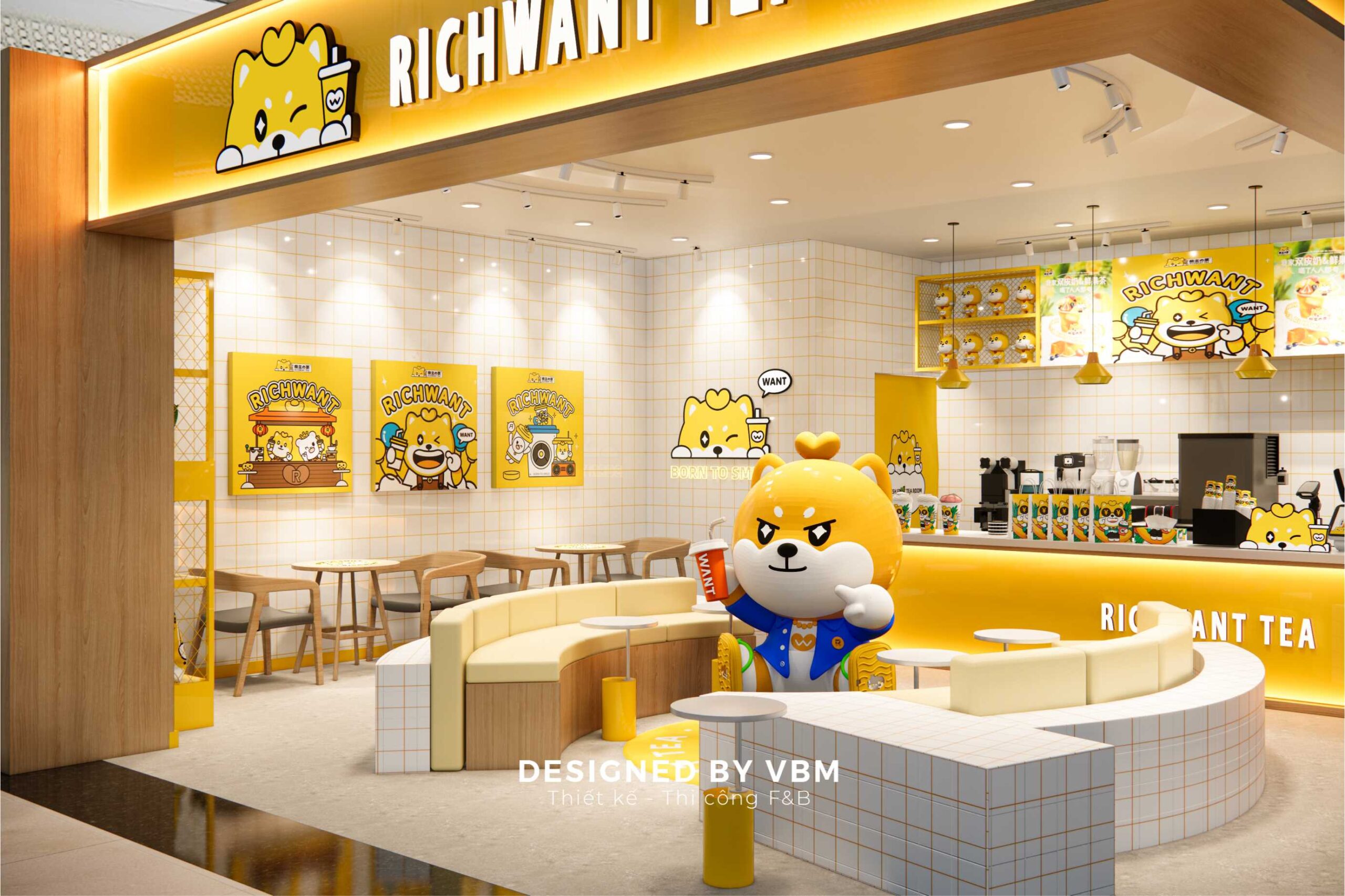 RICHWANT TEA là dự án quán trà hiện đại và tinh tế, được thiết kế bởi VBM. Với không gian mở và thiết kế tối giản nhưng đầy phong cách, RICHWANT TEA mang đến cho khách hàng trải nghiệm thưởng thức trà độc đáo và thư giãn. RICHWANT TEA được trang bị đầy đủ tiện nghi hiện đại, từ hệ thống đèn chiếu sáng tinh tế, thiết bị pha chế hiện đại đến không gian ngồi thoải mái. Mỗi chi tiết đều được chăm chút để mang lại trải nghiệm tốt nhất cho khách hàng.