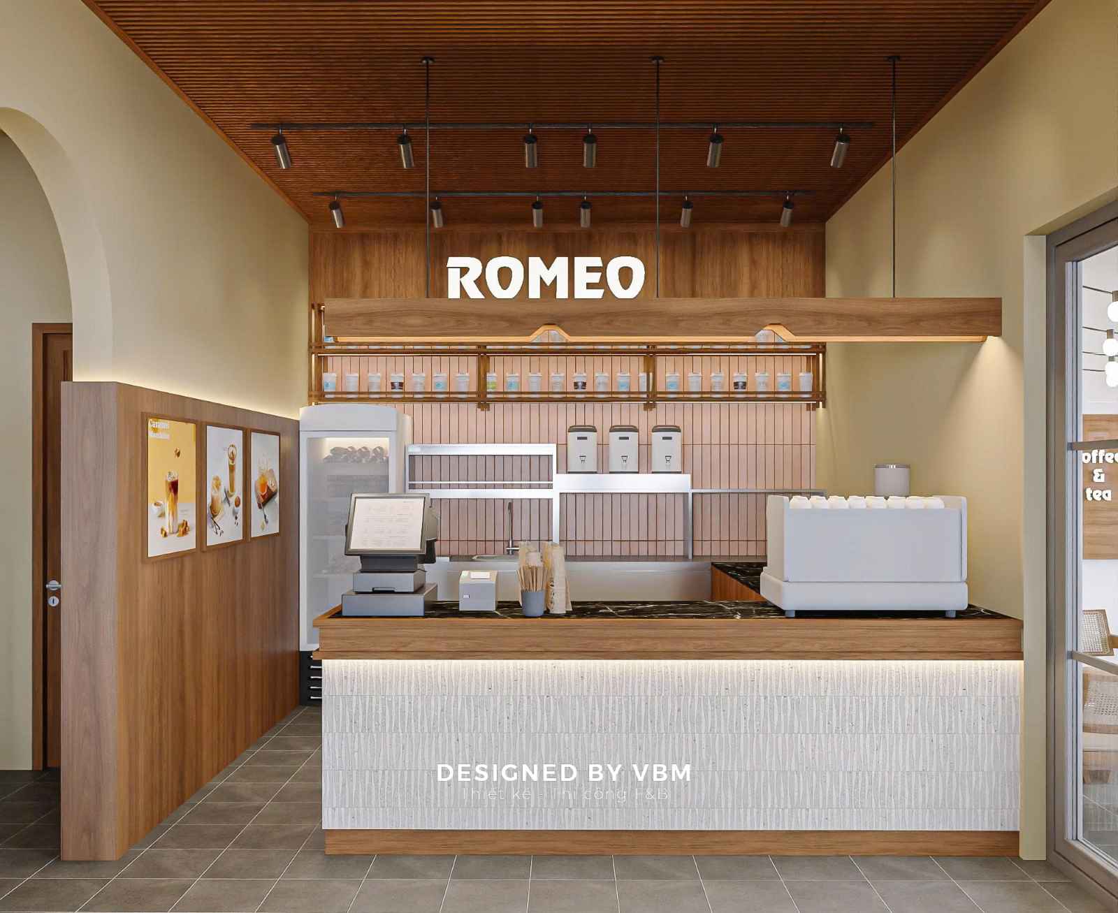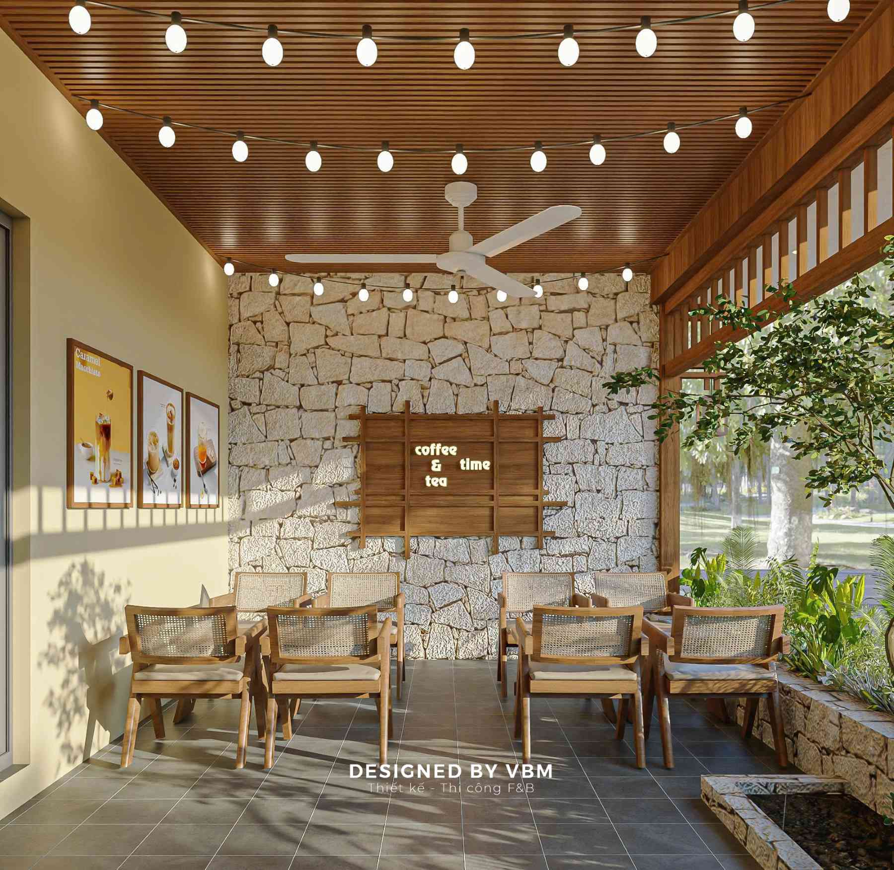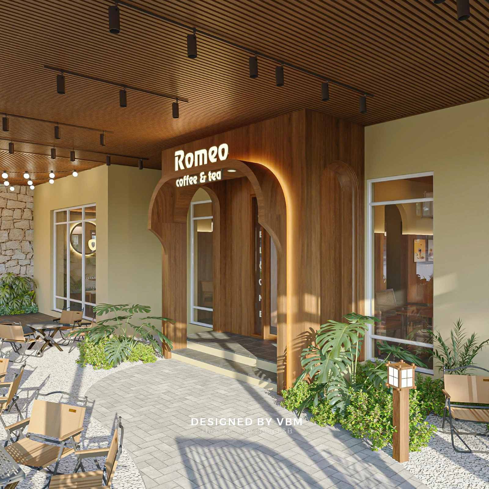 Giữa nhịp sống ồn ào, Romeo Coffee & Tea hiện lên như một khoảng lặng sân vườn bình yên, nơi VBM đã khéo léo đưa thiên nhiên hòa quyện vào từng chi tiết thiết kế.
