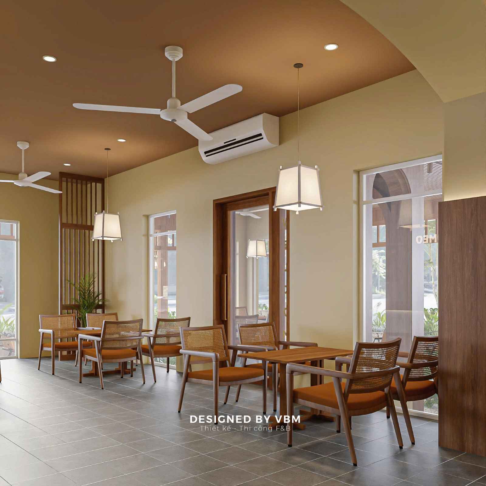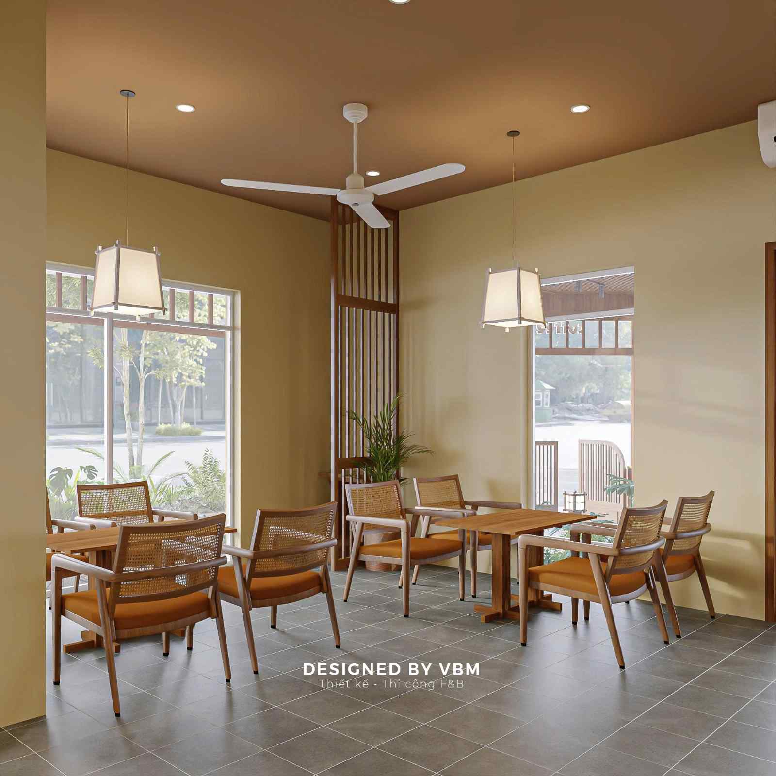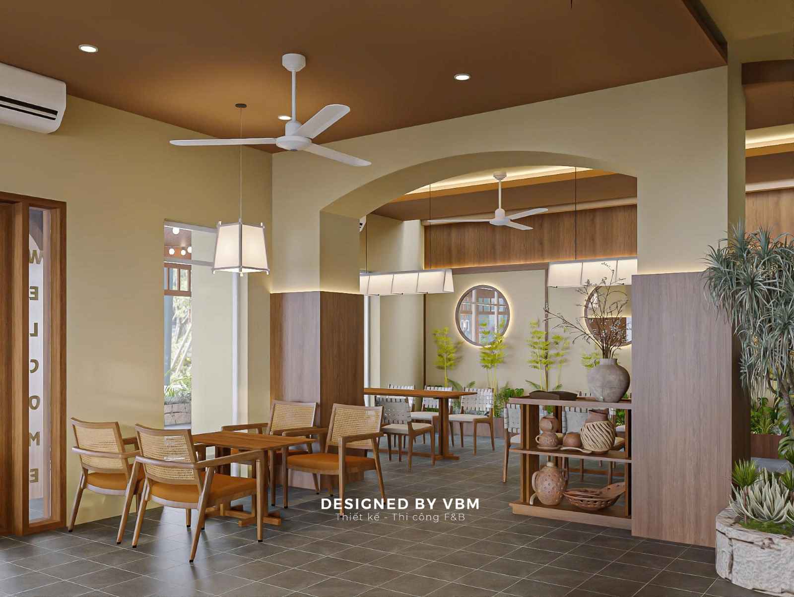 Giữa nhịp sống ồn ào, Romeo Coffee & Tea hiện lên như một khoảng lặng sân vườn bình yên, nơi VBM đã khéo léo đưa thiên nhiên hòa quyện vào từng chi tiết thiết kế.