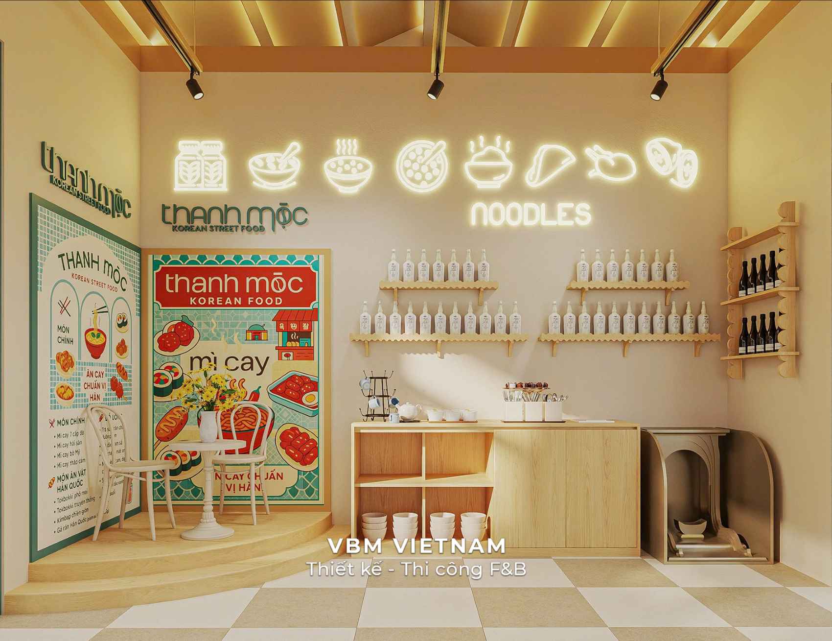 VBM Vietnam mang đến một không gian ẩm thực Hàn Quốc mang hơi thở hiện đại nhưng vẫn giữ trọn nét mộc mạc, gần gũi trong dự án Thanh Mộc Korean Street Food.