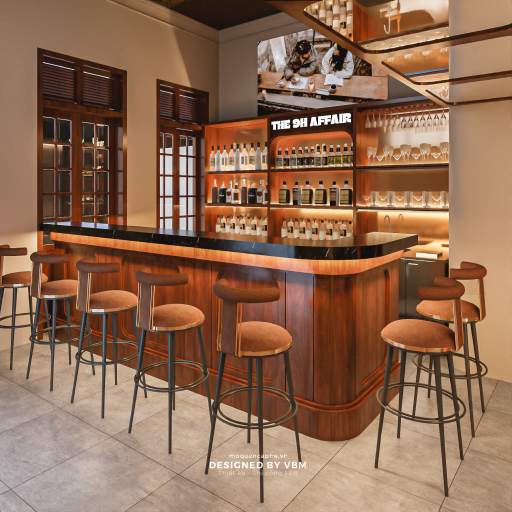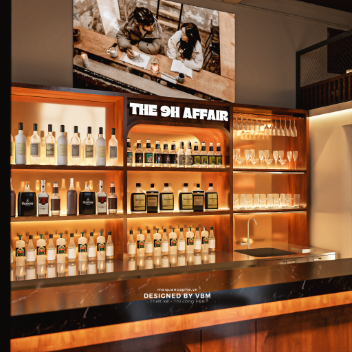 The 9H Affair là một quán bar đầy cuốn hút nằm tại trung tâm Phố Cổ Hà Nội, được thiết kế để mang lại cảm giác bí ẩn và tinh tế. Được thực hiện bởi VBM Việt Nam, không gian này kết hợp hài hòa phong cách cổ điển và hiện đại. Với tông màu trầm ấm và phong cách thiết kế lấy cảm hứng từ vintage (20-30%), quán mang đến một không khí ấm cúng và gần gũi, lý tưởng cho những khách hàng trẻ yêu thích sự sang trọng nhưng không quá cầu kỳ.