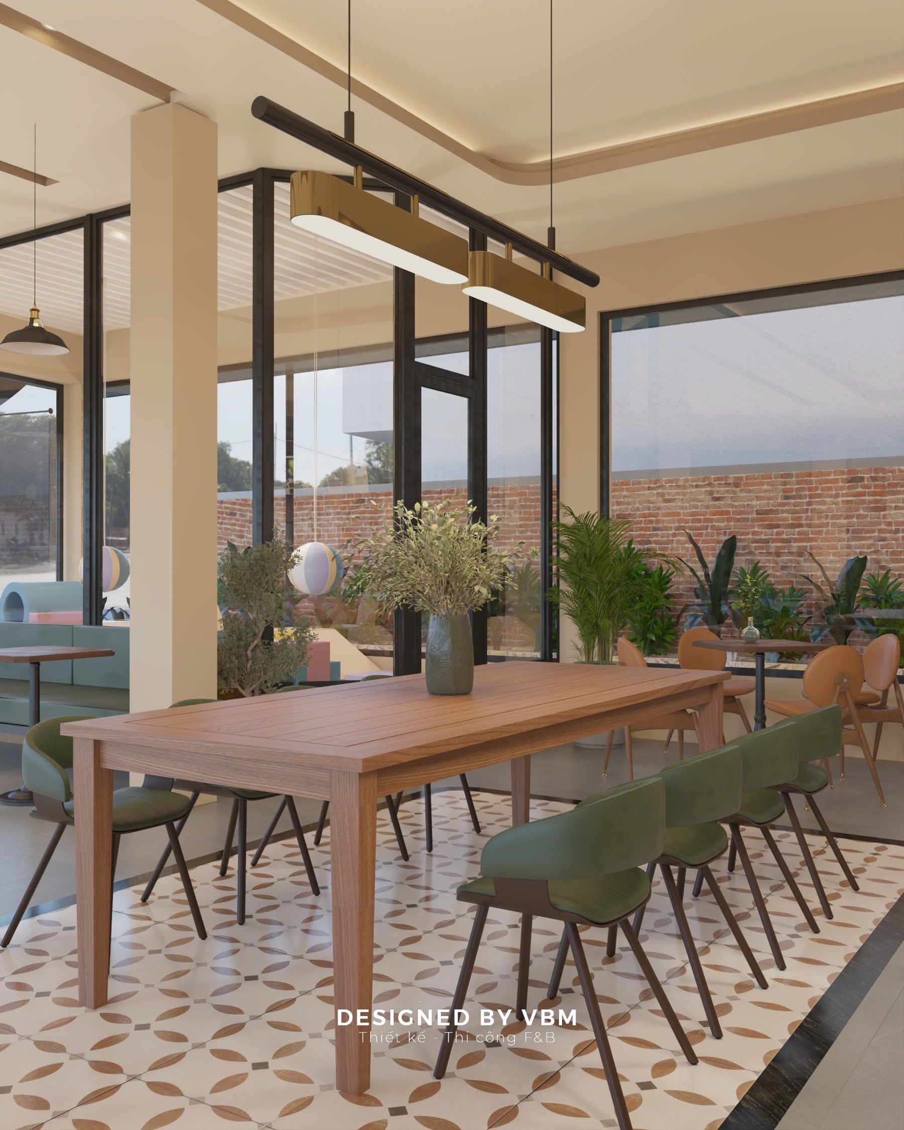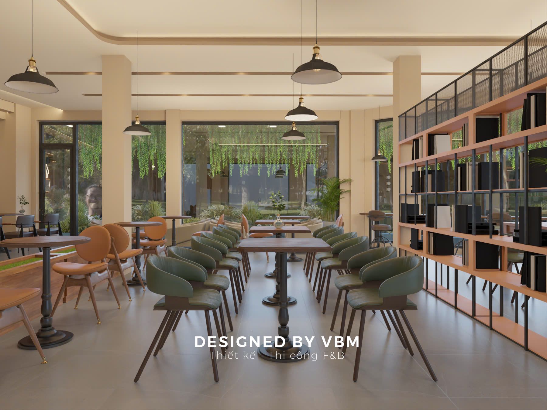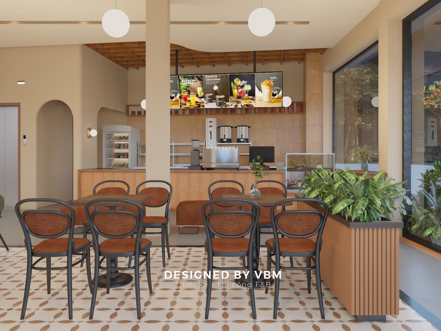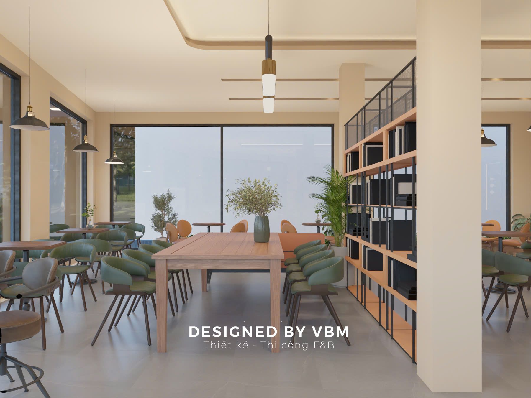 Bước vào bên trong, khách hàng sẽ bị thu hút bởi thiết kế nội thất mở, tận dụng tối đa ánh sáng tự nhiên. Không gian được chia thành nhiều khu vực khác nhau, từ bàn dài cho nhóm đông đến các góc nhỏ riêng tư dành cho những ai muốn tìm kiếm sự yên tĩnh. Các chi tiết nội thất với chất liệu gỗ ấm áp, điểm xuyết sắc xanh từ cây cối, tạo nên tổng thể hài hòa, mang lại cảm giác dễ chịu và đầy cảm hứng.