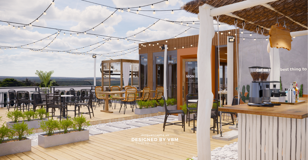 Dự án thiết kế Vibe Coffee Phú Quốc được thực hiện bởi VBM là sự kết hợp hài hòa giữa phong cách hiện đại và không gian ngoài trời thoáng đãng, tạo nên một điểm đến lý tưởng cho du khách tại đảo ngọc. Với mục tiêu mang lại trải nghiệm khác biệt, dự án này tập trung vào việc khai thác không gian mở cùng thiết kế tinh tế và ánh sáng ấn tượng.