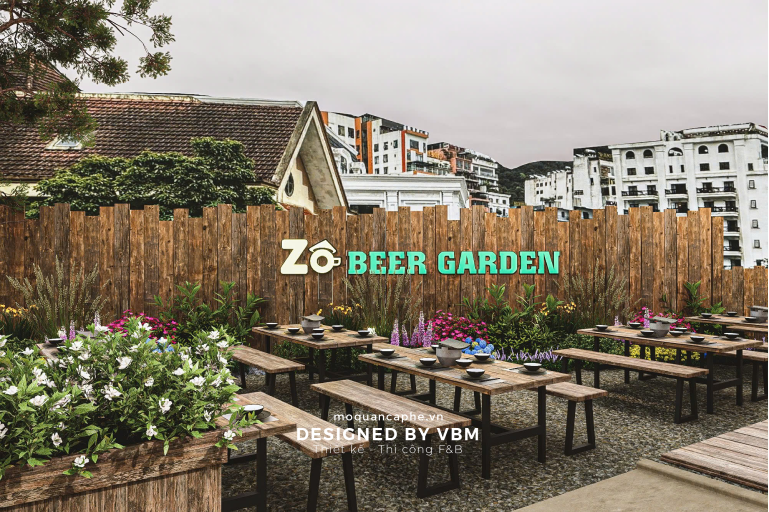 Không gian nhà hàng được chia thành hai khu vực chính: khu vực trong nhà và khu vực ngoài trời. Khu vực trong nhà được thiết kế với nội thất gỗ mộc mạc kết hợp với đèn treo kiểu công nghiệp, mang lại sự ấm cúng và thoải mái. Khu vực ngoài trời của Zô Beer Garden lại mở ra một không gian rộng rãi, nơi thực khách có thể ngồi thưởng thức các món nướng BBQ dưới bầu trời thoáng đãng của Tam Đảo. Bàn ghế gỗ được sắp xếp khéo léo, kết hợp với cây xanh xung quanh, mang đến cảm giác gần gũi với thiên nhiên.