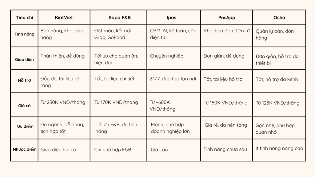 Bảng So Sánh Chi Tiết Các Phần Mềm Quản Lý Quán Cafe (Ưu, Nhược Điểm, Giá Cả)